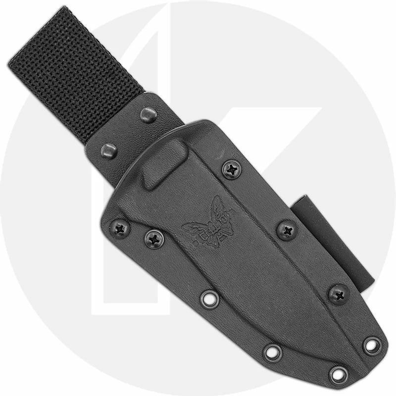 The 539GY Benchmade Anonimus Knife is a rugged little EDC, suitable for the great outdoors or city streets, that features a 5.00 inch drop point fixed blade made of tough CPM-CruWear tool steel, .114 inches thick, with a Rockwell hardness of 62-64, integral finger guard, large choil and a notched thumb rest for secure grip and precise control. The Anonimus has full tang construction for strength, ergonomic OD Green scales with milled grooves for secure purchase, and a lanyard hole. A black molded belt sheath with lashing holes is included. The Anonimus has an overall length of 9.83 inches, and it weighs 5.94 ounces. Proudly made in the USA.