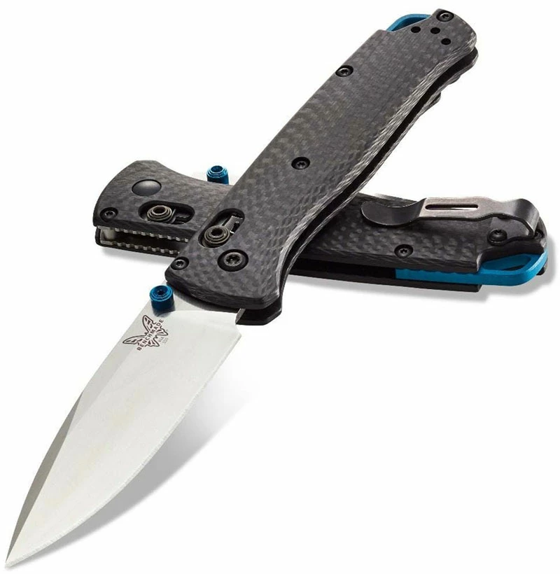 From the Benchmade website: Since its inception, the Bugout has achieved unmatched dominance as the premier ultralight EDC pocket knife. Now, it gets the elite Benchmade upgrade, in the form of the all-new 535-3. Specced out with a milled carbon-fiber handle, premium S90V super steel, and signature blue highlights. This latest addition to the Bugout line retains all the crowd-pleasing features you love, while pushing its performance to the next level.