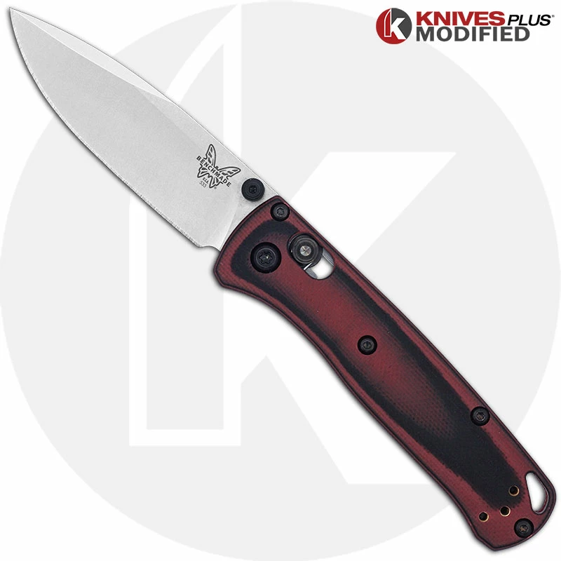 MODIFIED Benchmade Mini Bugout 533 Knife + KP Contoured Black / Red G10 Scales + KP Black Thumbstud & Standoffs