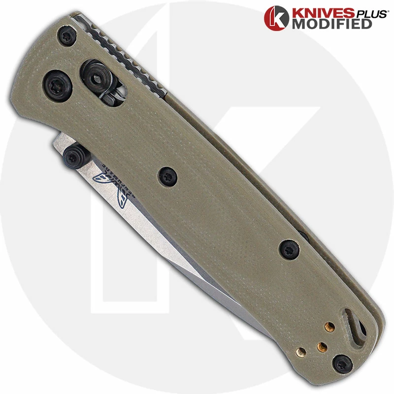 MODIFIED Benchmade Mini Bugout 533 Knife + KP Contoured Desert Tan G10 Scales + KP Black Thumbstud & Standoffs