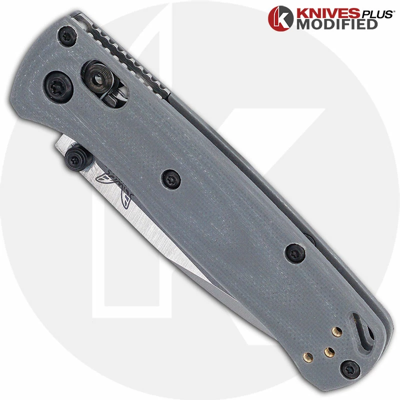 MODIFIED Benchmade Mini Bugout 533 Knife + KP Contoured Grey G10 Scales + KP Black Thumbstud & Standoffs
