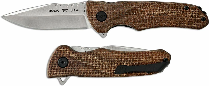From the Buck website: The Buck Knives 841 Sprint Pro Burlap Micarta® is the perfect, upgraded, everyday carry pocket knife. The 841 Sprint Pro features ball-bearing technology that allows this folding knife to open smoothly and rapidly when you engage the flipper on the top of the knife. A sturdy liner lock safely secures the blade open while in use. The knife closes to 4 3/8″ (11.1 cm) to easily fit into your pocket. The satin finished, drop point blade is made of razor-sharp S30V steel ideal for a variety of everyday tasks. The lightweight handle is made of Burlap Micarta® for added strength and superior grip, even in wet conditions. This knife is easy to carry with the convenient deep pocket clip. The 841 Sprint Pro is perfect for someone that wants a modern, upgraded, everyday carry knife with a classic style.