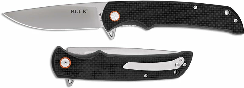 From the Buck Product Guide: Big and bold, Buck’s 259 Haxby combines a full length flat grind with a carbon fiber style, creating an elegant and stylish EDC. A red pivot collar on the handle gives it an added appeal, accentuating the carbon fiber handle. Ball bearings allow for easy opening with one hand, and a liner lock secures the blade, making the Haxby a sleek and modern choice for daily carry.