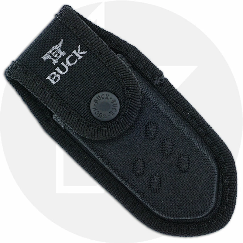 The 0659ORS Buck Folding Pursuit Pro Knife is a hunter’s essential that features a 3 5/8 inch drop point blade made of premium S35VN stainless steel, .120 inch thick, with a Rockwell hardness of 59-61, notched thumb rest for secure purchase and precise control, and dual thumb studs for ambidextrous one hand opening. The black GFN (glass filled nylon) handle with grooved orange Versaflex® overlay, 5 inches closed, has finger groove contouring for comfort and secure grip, a sturdy lockback and a lanyard hole. A black polyester sheath is included. The Large Buck Folding Pursuit Pro Knife has an overall open length of 8 5/8 inches, and it weighs 3.8 ounces. Proudly made in the USA.