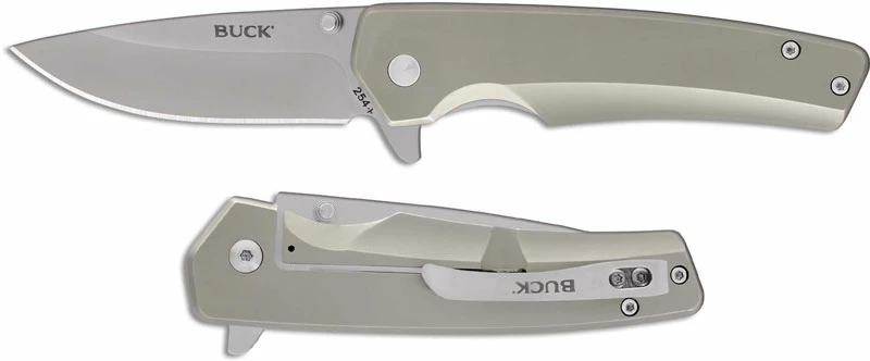 From the Buck Product Guide: A streamlined, framelock folder that is both capable and classy, the Odessa is the perfect choice for an EDC knife. Dual thumbstuds allow for easy, ambidextrous one-hand open and the framelock secures the blade while in use. An elegant stainless steel handle gives this knife a modern appeal, while the drop point blade is capable of handling the day to day.