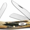 The illustrated Case Knife is the Blue Bone (61749LSS) Case Mini CopperLock Knife that features a locking clip point blade made of mirror polished Tru-Sharp surgical steel. The jigged Blue Bone handle of this Case knife, 3 5/8″ closed, has a nickel silver Case USA logo shield, nickel silver bolsters and a lockback. The Case Mini CopperLock knife with Blue Bone handle weighs 2.0 ounces.