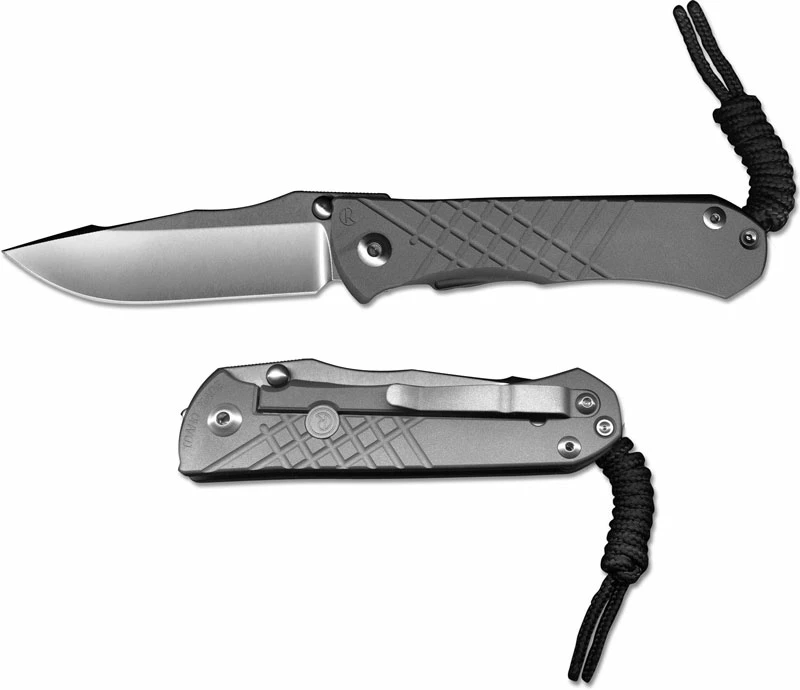 This Umnumzaan Knife, designed by Chris Reeve and manufactured by Chris Reeve Knives, features a 3.675 inch Crucible S45VN stainless steel modified drop point blade, .1400 inch thick. The blade has a special large hollow grind for strength, a notched thumb rest for secure grip, and an ambidextrous thumb stud with polyurethane O-ring shock absorbers (developed by Grant and Gavin Hawk) that locks up against the frame for superior strength against sideways torque. The 6AL4V titanium handle, 4.77 inches closed, has a tactile sand blasted finish for secure grip, a sturdy pivot with large pivot screw and pin, large bronze phosphor washers, and the innovative Reeve Ceramic Ball End Integral Lock that uses a ceramic ball as an interface for the lock bar to the blade tang for consistent solid lock up. (The ball also drops into a detent on the blade to ensure the blade does not open accidentally.) The handle has machined checkered texturing for secure grip, open frame construction, a lanyard post, and a removable pocket clip mounted at the butt end. The Umnumzaan has an overall open length of 8.409 inches, and it weighs 5 ounces. Proudly made in the USA.