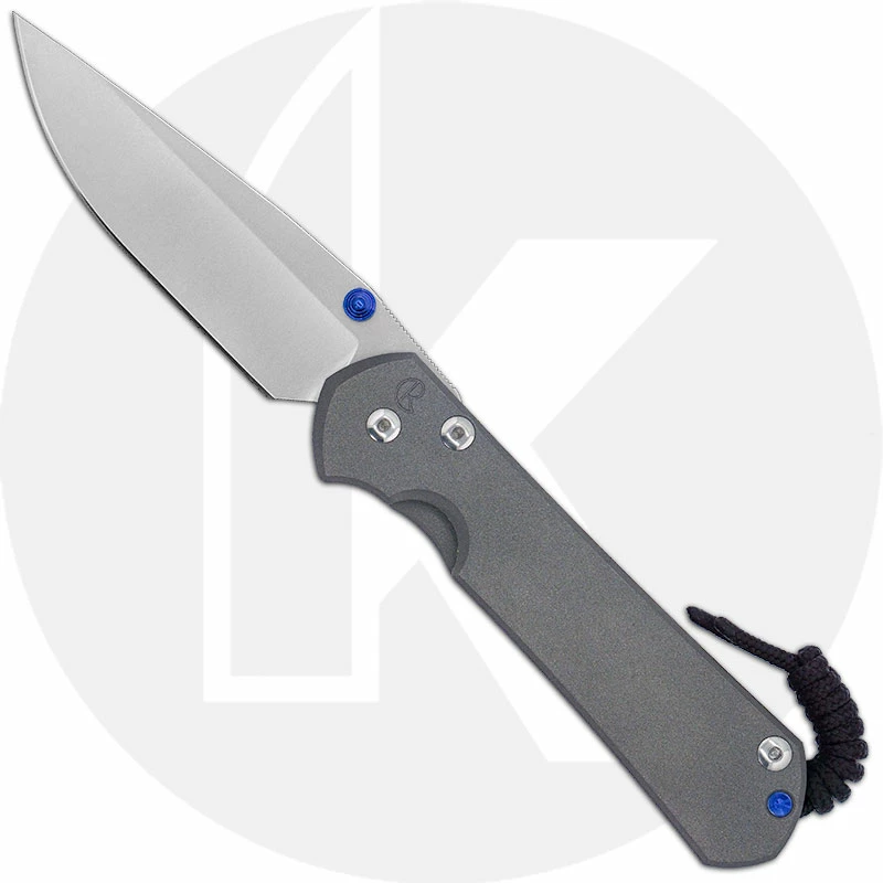 Chris Reeve Knives: Large Sebenza 31, Stonewash Drop Point, Sandblast Titanium, CRK-L31-1000