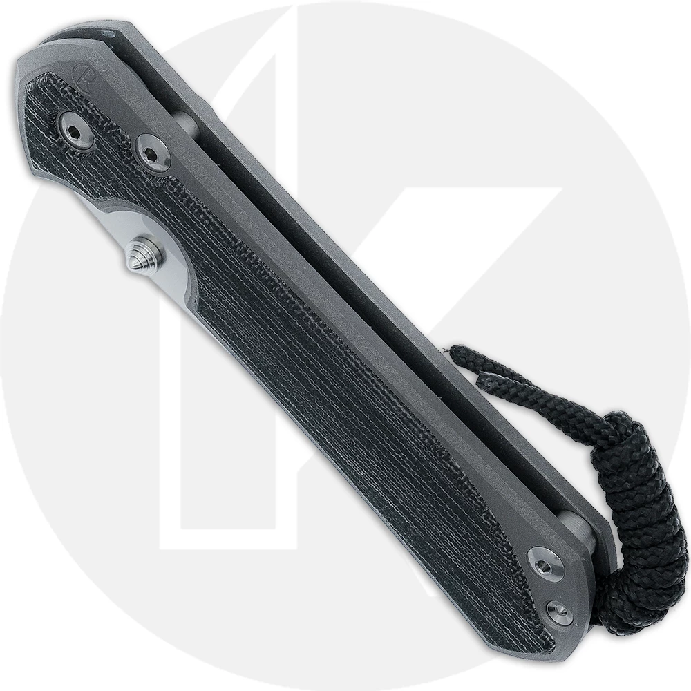 Chris Reeve Knives: Large Sebenza 31, Stonewash Drop Point, Black Canvas Micarta and Titanium, CRK-L31-1200