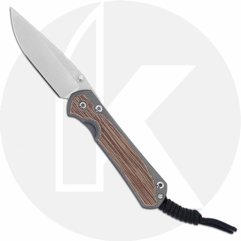 Chris Reeve Knives: Small Sebenza 31, Stonewash Drop Point, Natural Canvas Micarta and Sandblast Titanium, CRK-S31-1212