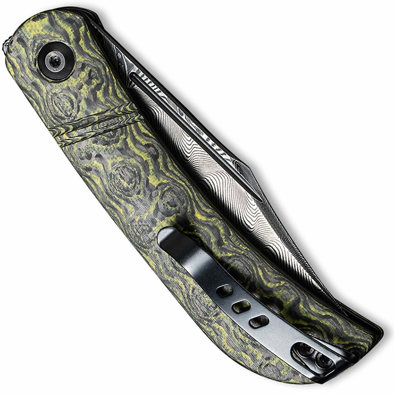 CIVIVI Knives: CIVIVI Appalachian Drifter, Black Damascus with Layered Yellow G10 / Rose Carbon Fiber, WE-C2015DS-3