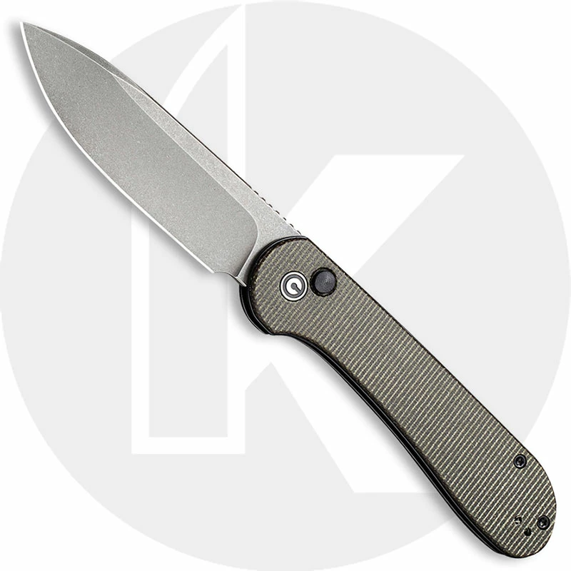 CIVIVI Knives: CIVIVI Button Lock Elementum, Gray Stonewash 14C28N, Dark Green Micarta Handle, WE-C2103C