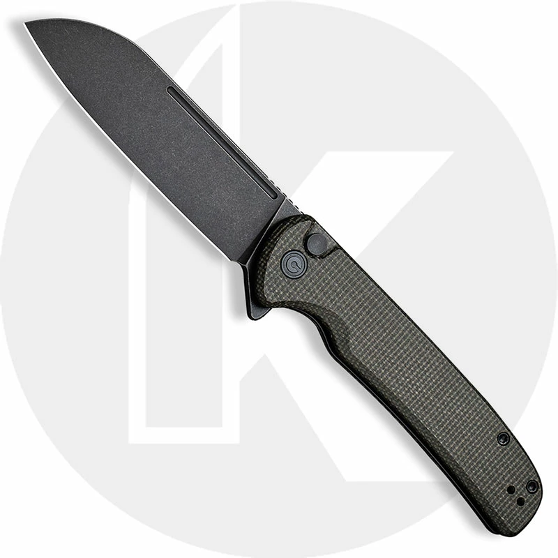 CIVIVI Knives CIVIVI Chevalier C20022-2 – Black Stonewash 14C28N – Dark Green Micarta – Button Lock Flipper Folder