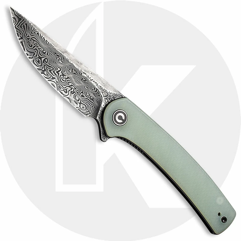 CIVIVI Knives: CIVIVI Mini Asticus Knife, Black Hand Rubbed Damascus, Natural G10 Handle, WE-C19026BDS1