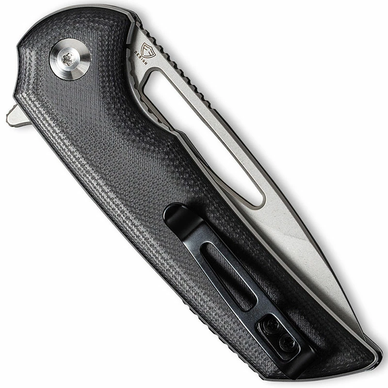 The C2010D CIVIVI Odium is a compact value price EDC produced by CIVIVI, a subsidiary of WE Knife Company, that features a 2.65 inch drop point blade made of D2 steel, .12 inches thick, with a Rockwell hardness of 59-61, a flat grind, stonewash finish, notched thumb rest for secure grip, and thumb hole and flipper for ambidextrous one hand opening. The black G10 handle, 3.54 inches closed, has ergonomic contours for comfort, pivot with ceramic ball bearing support for smooth opening, gray stainless steel liners and a G10 backspacer for strength, sturdy liner lock and a side to side reversible deep carry stainless steel pocket clip mounted at the butt end. This WE CIVIVI Odium Knife has an overall open length of 6.19 inches, and it weighs 2.50 ounces. Made in China.